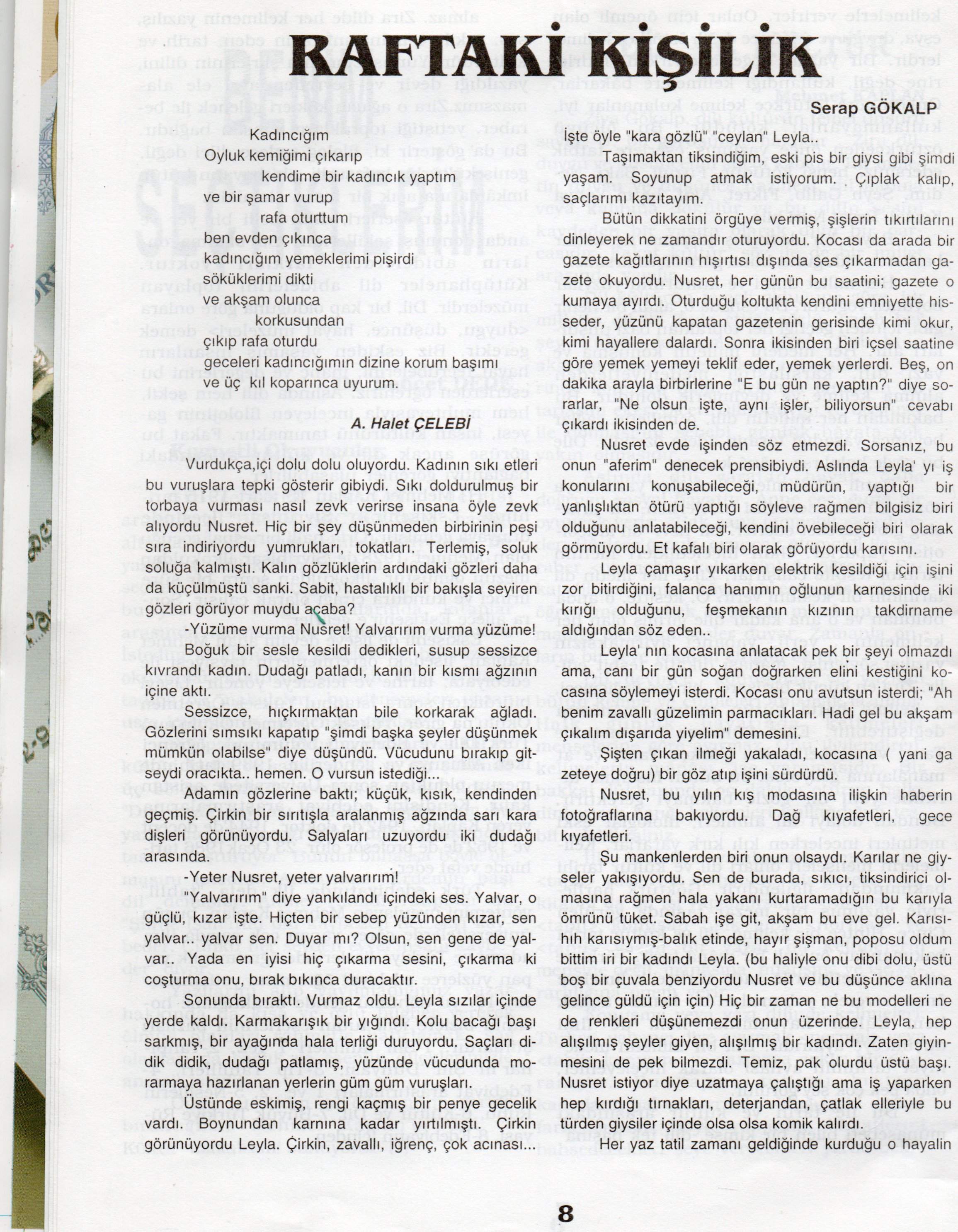 Bu sayıda Raftaki Kişilik öyküm var. A.Halet Çelebi’nin bir şiiri ile başlıyor ;