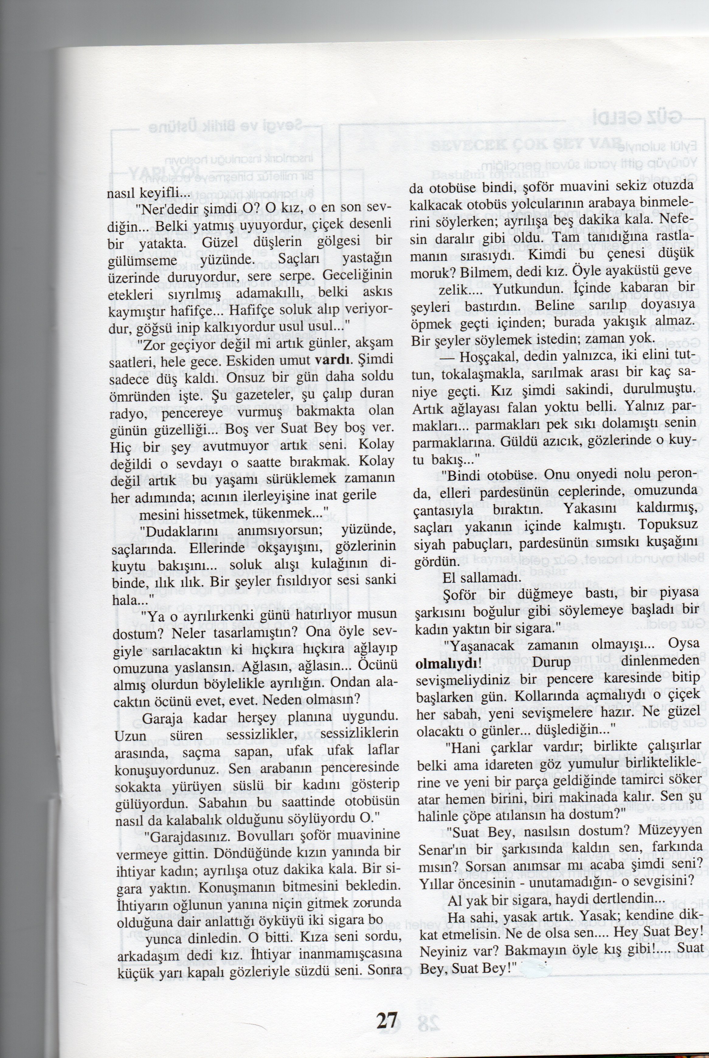 1995 yılı Ağustos, 32. sayısında ise Suat Bey’in Son Gecesi başlıklı öyküm var.