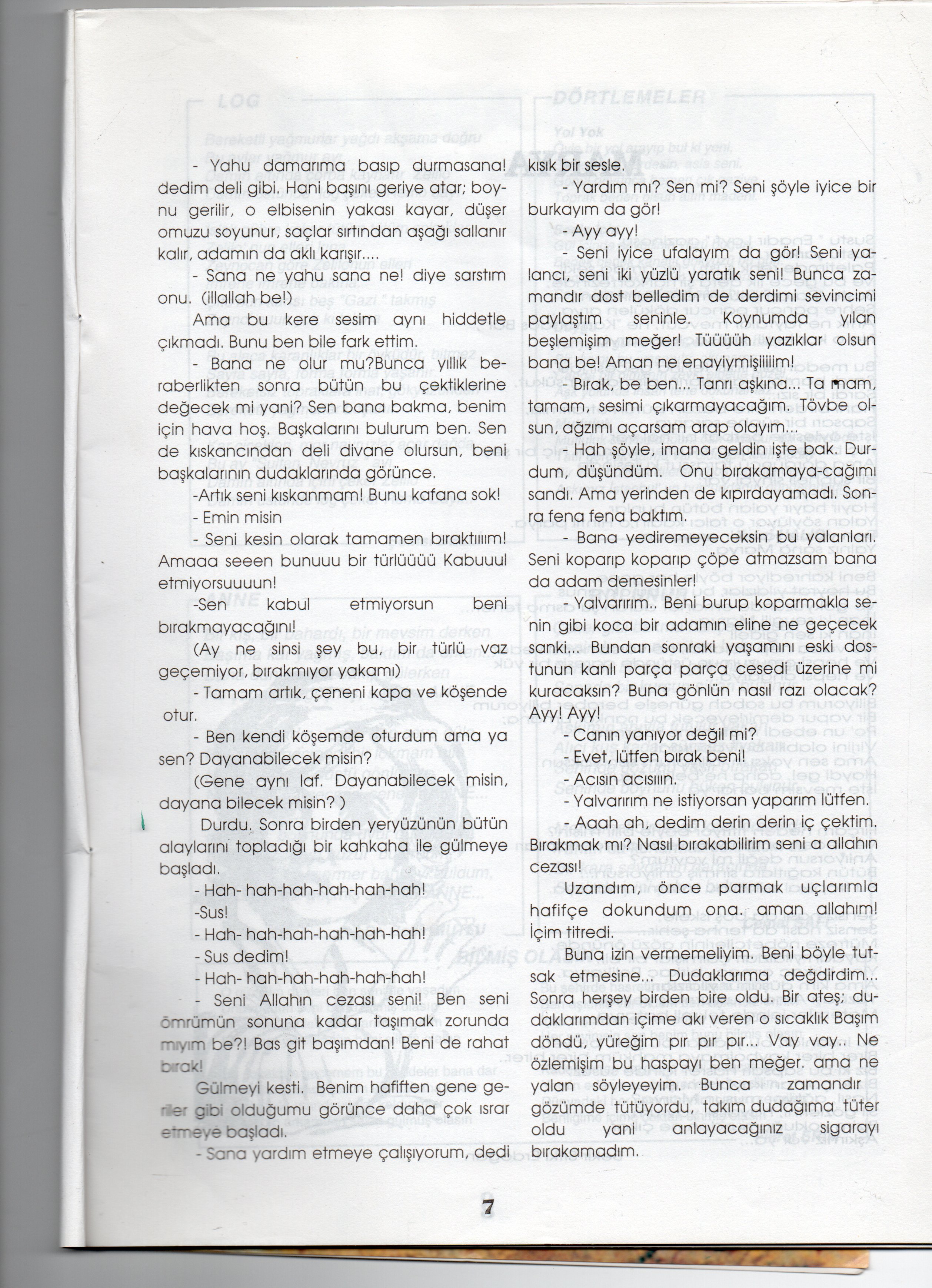 O yıllara ait başka bir ayrıntıyı da paylaşmak isterim, bu derginin satış fiyatının 50.000.-TL. (KDV dahil) olması. 33. Sayı üç aylık bir dergi olmasına rağmen (arada çıkarılamıyordu galiba) fiyatı 100.000.-TL’ye çıkmış. Bu sayıda Tiryaki öyküm var.