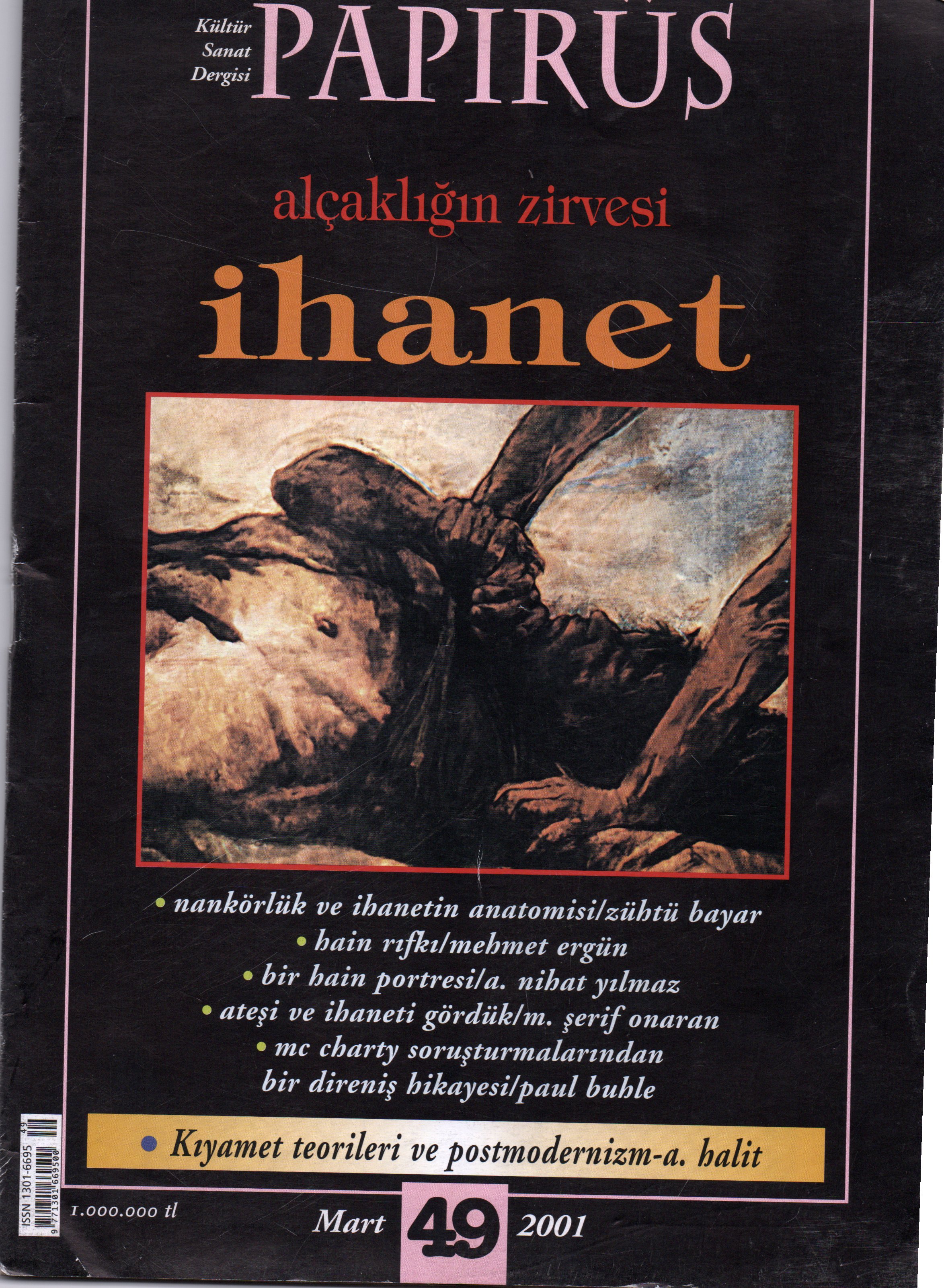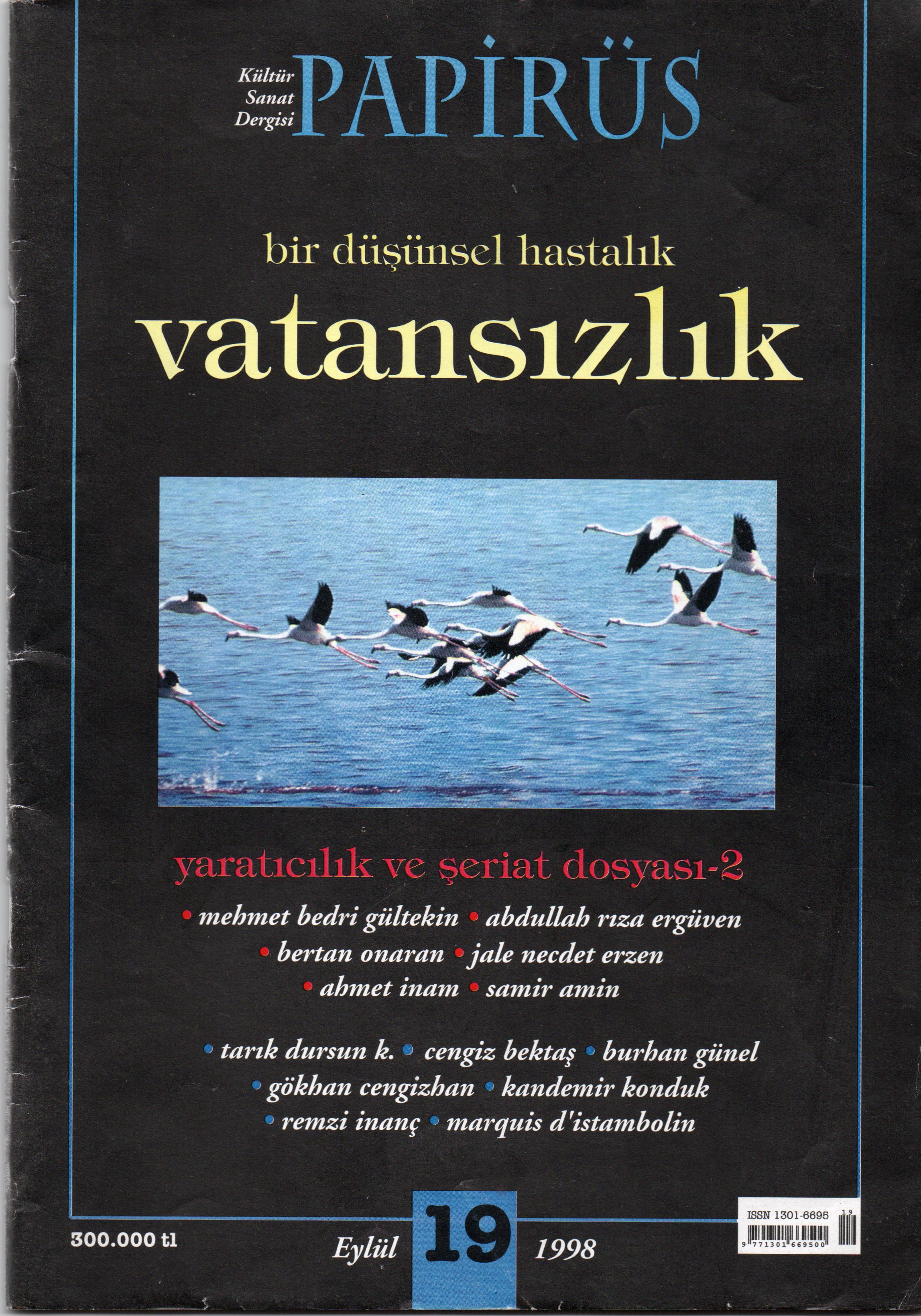Papirüs Dergisi’yle 1998 Eylül’ünde çıkan 19.sayısıyla tanışmışız. İçeriği ve emek veren kalemleriyle benim için en önemli dergilerden biri olmuş, uzun süre de öykülerime yer vermiş bir dergidir. Bu sayıda yapıtları olan yazarlara bakıyorum da, Bertan Onaran, “Yaratma ve Yaratıcılık” üzerine yazmış, Tarık Dursun K., “Şairler Gerçekten Ölürler Mi”, başlıklı yazısıyla, Cengiz Bektaş “Onlar Cami Değildi”, Burhan Günel, “Çığlık”, Kandemir Konduk “İyi Bir Haber Programında Neler Olmalıdır?”, Hasan Özkılıç “Karpuzkaldıran” başlıklı yazılarıyla yer alıyor. Bense Rüzgârlı Bir Gecede Yaşlı Bir Çınar öykümle, şimdi burada hepsini sayamadığım önemli yazarların arasındayım ki bu genç bir yazar için mutluluk verici.