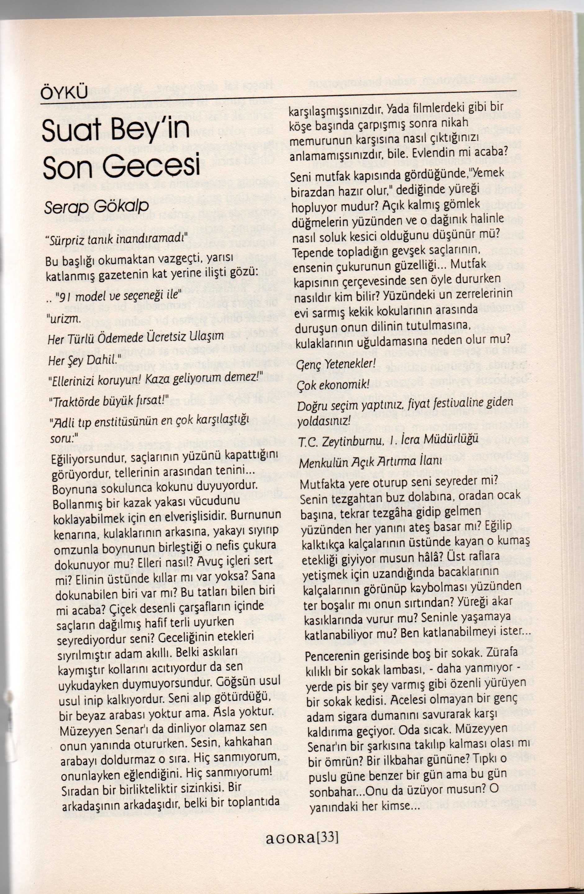 Bakışlarla tanımlanan kadın “Takıldınız mı gözlerine, zor alırdınız kendinizi oradan.” S.143 (ondan yerine, oradan demekle derinlik, genişlik adeta bir uçurumu betimler yazar.)