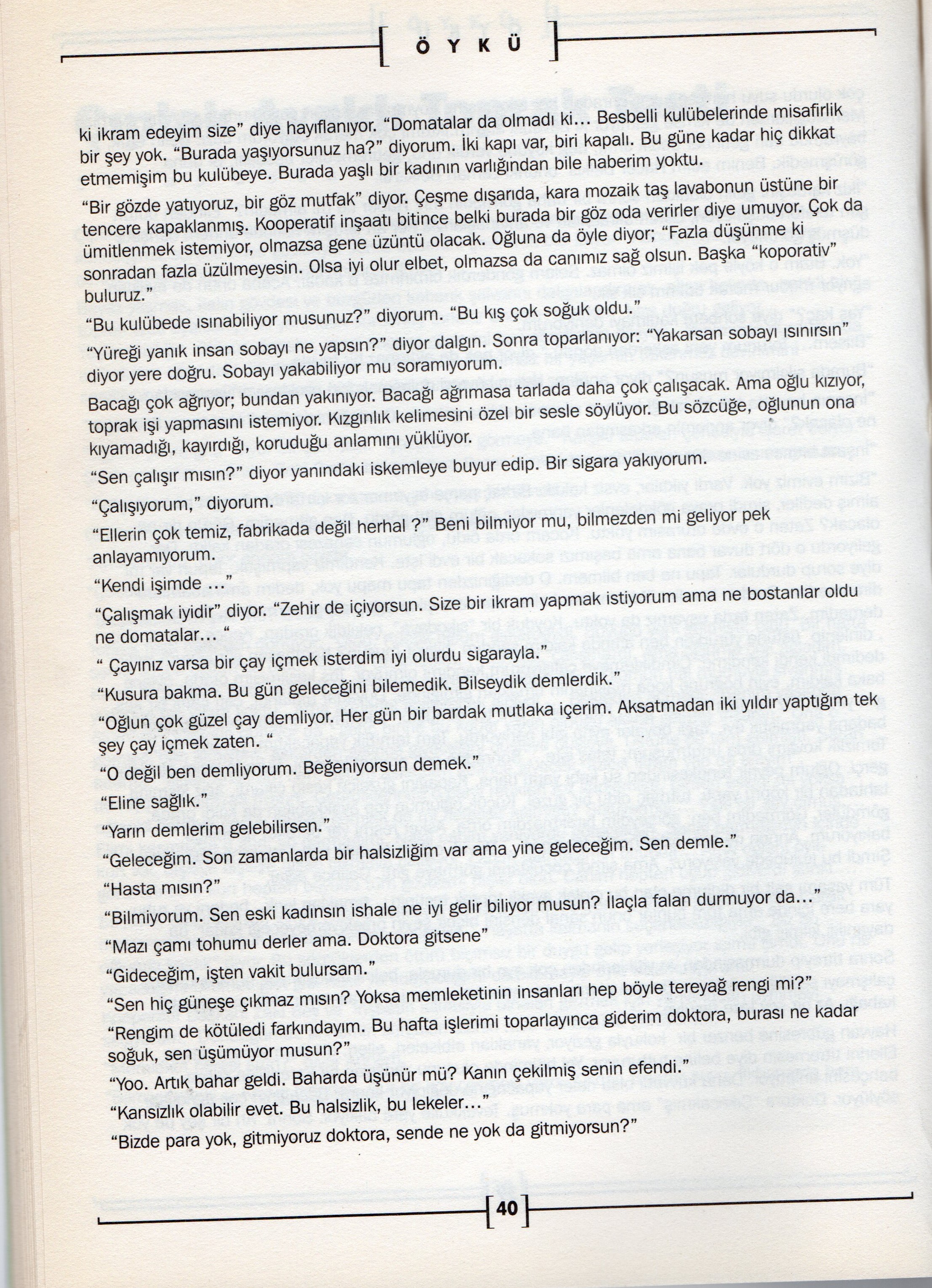 Ferzat’tı konuşan. Baktım öyle yüzüne sanki önce yüzüne baktım da sonra sesini duydum. (Sf.41)