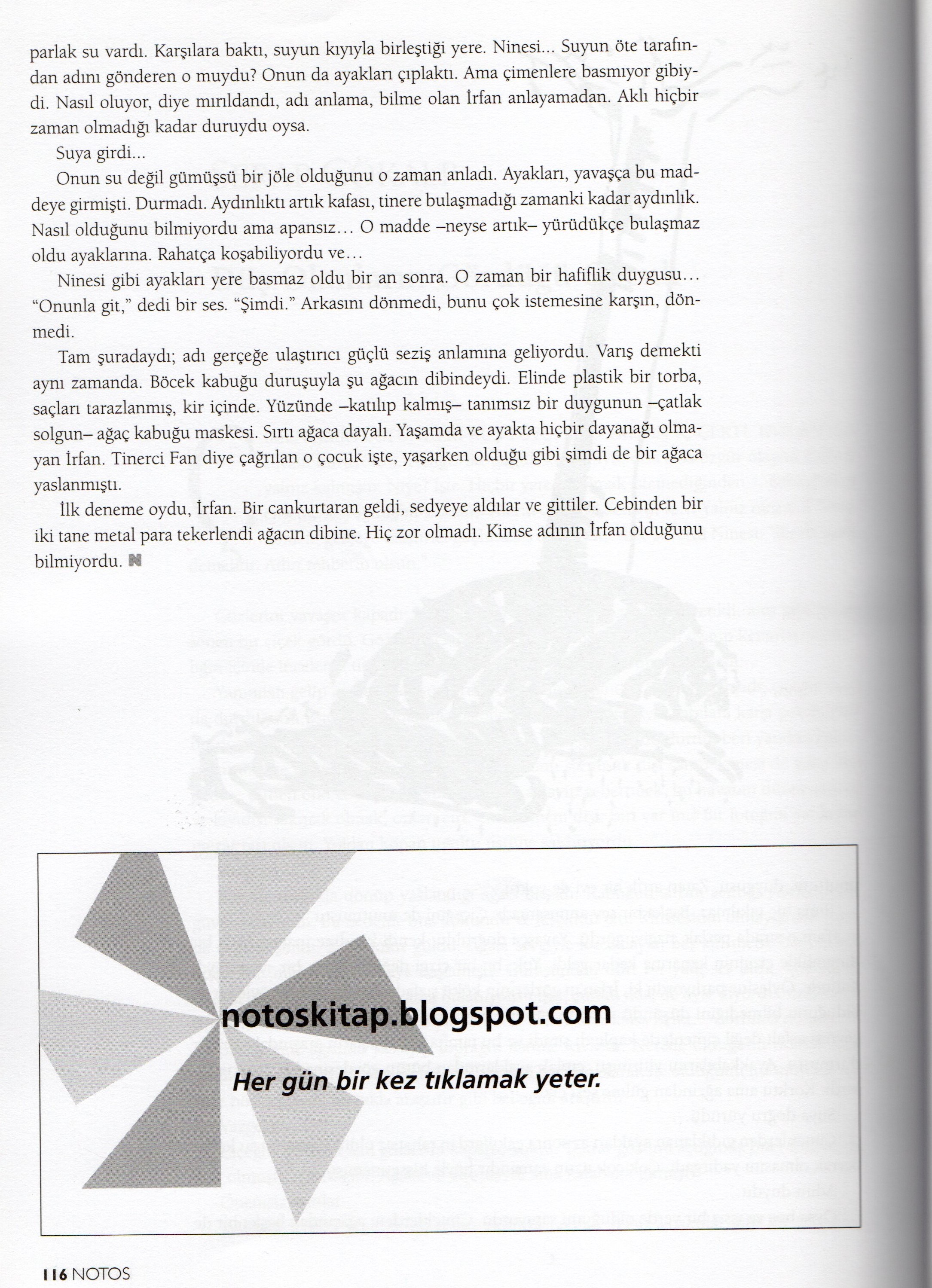 Onu tehdit eden çocuk ne zamandır oynadığı yüzündeki yaranın kabuğunu kopardı, sanki komik olan kafası bitli çocuk değil de yara kabuğuymuş gibi gülüyordu, inceleyip attı, parmağına tükürüp kanayan yere sürdü. Ötekiler gülmeyi kestiler.